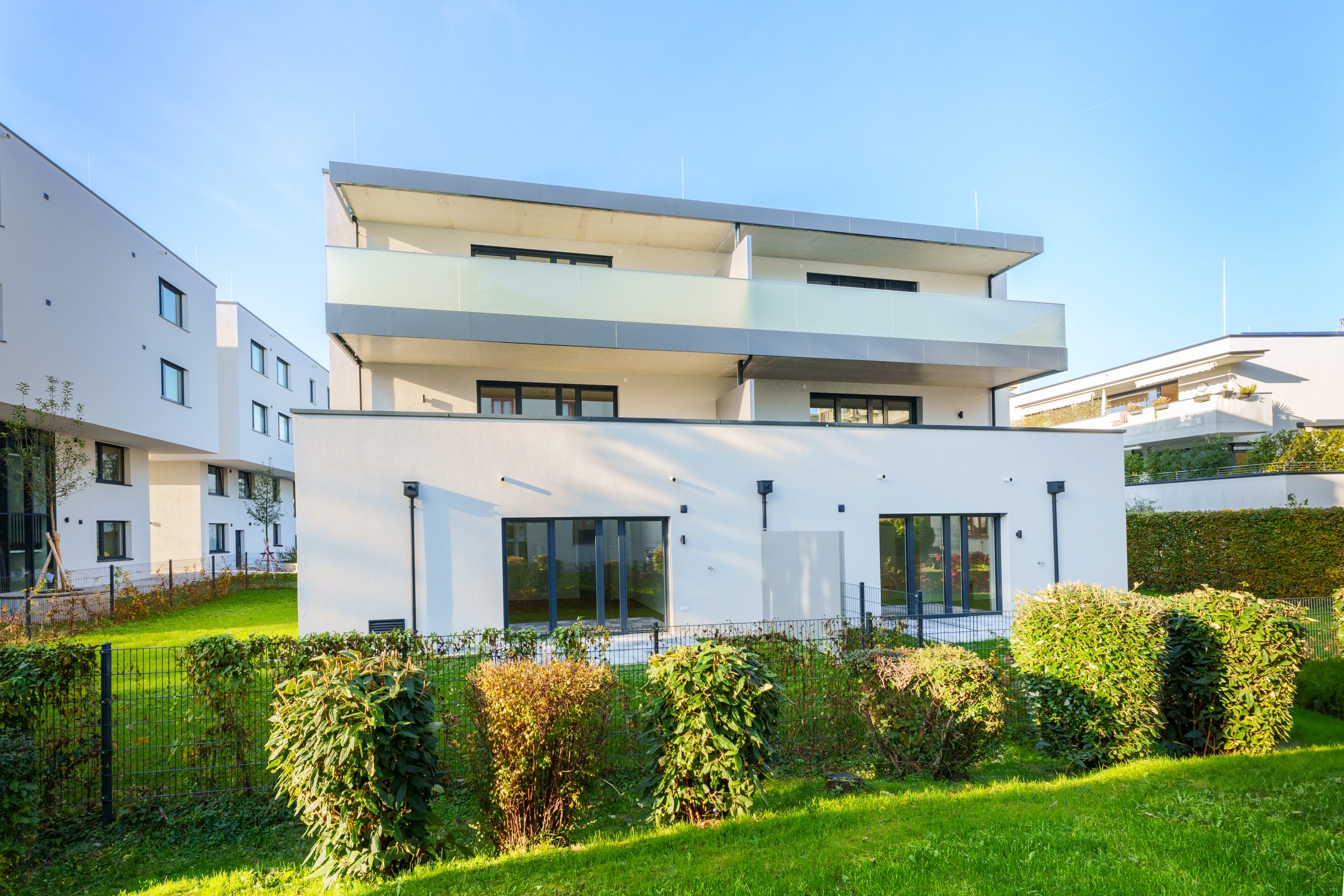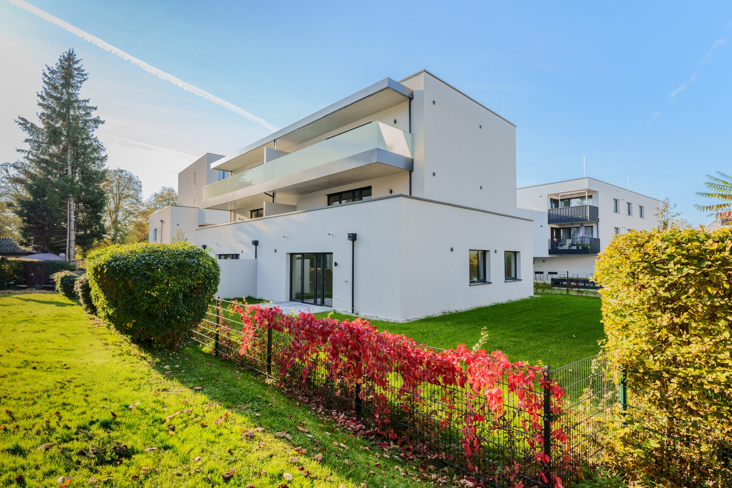 Platz zu machen. In drei Wohnhäusern stehen insgesamt 30 attraktive Zwei- und Drei-Zimmer-Eigentumswohnungen, die über schöne Privatgärten bzw. großzügige Balkone verfügen. Die Tiefgarage